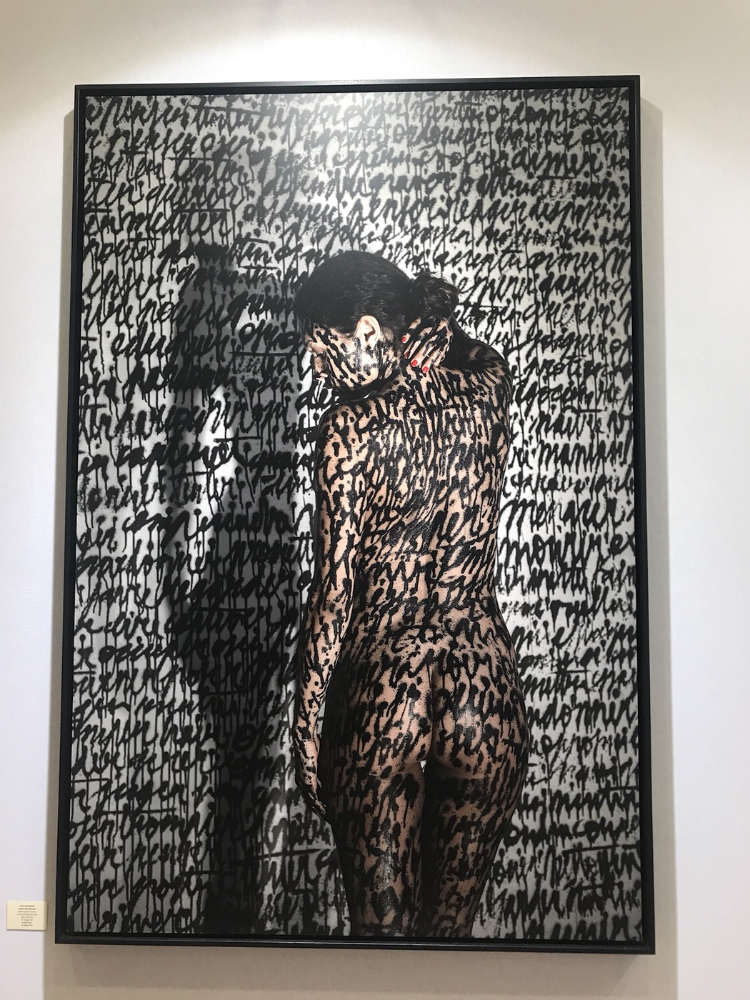 Les collages rock’n roll de Séverine habillent ces corps de femmes nues, ajoutant de l’irrévérence au thème traité qu’est La Religion.