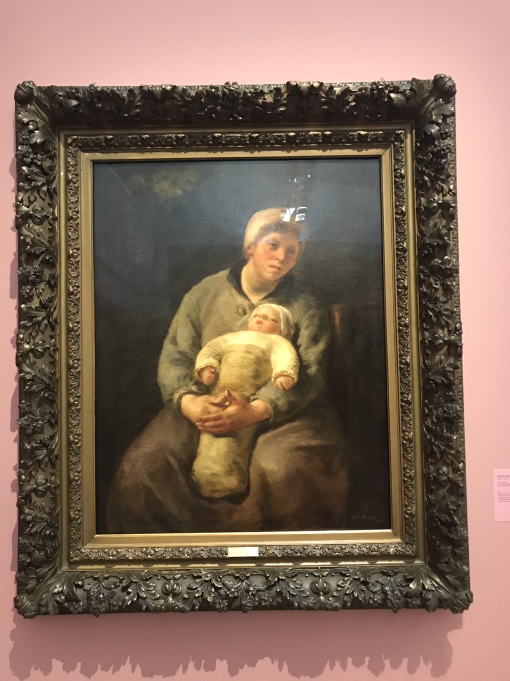 La profonde imprégnation de sa pensée par la religion se lit ainsi dans nombre de ses oeuvres dont la série des femmes apprenant à tricoter ou à lire à leur petite fille, dans une posture qui rappelle sainte Anne éduquant la Vierge, et celle des maternités si proches des Vierges à l’Enfant de son enfance.
