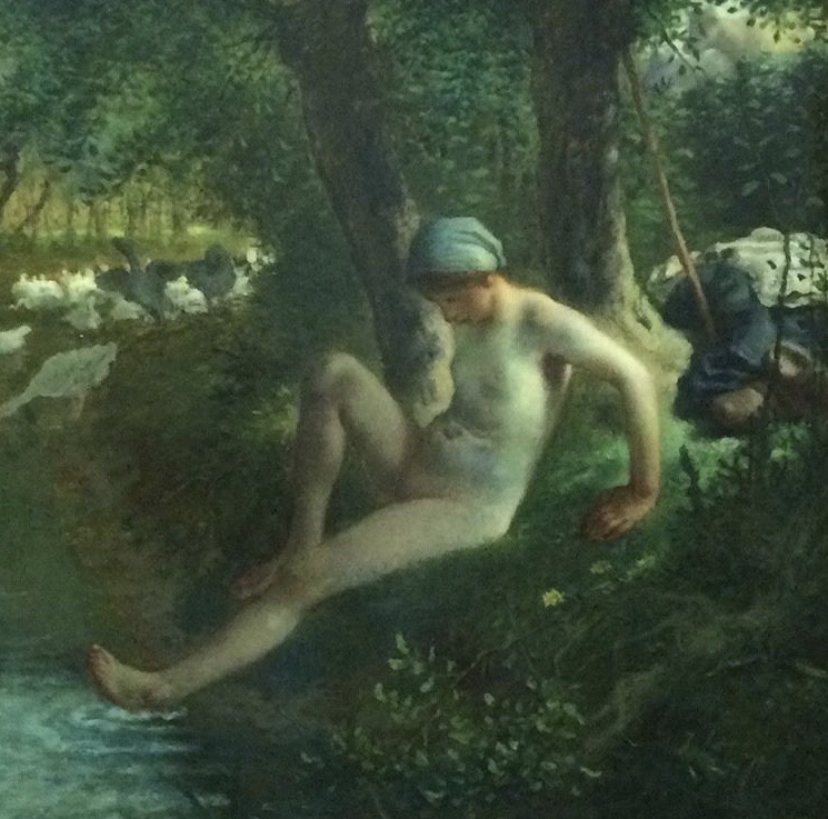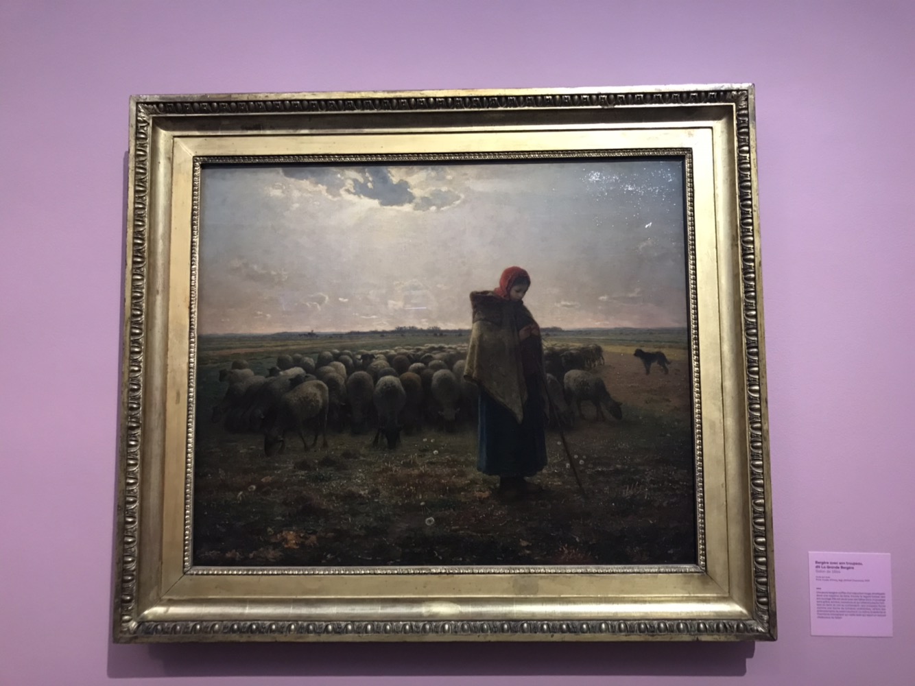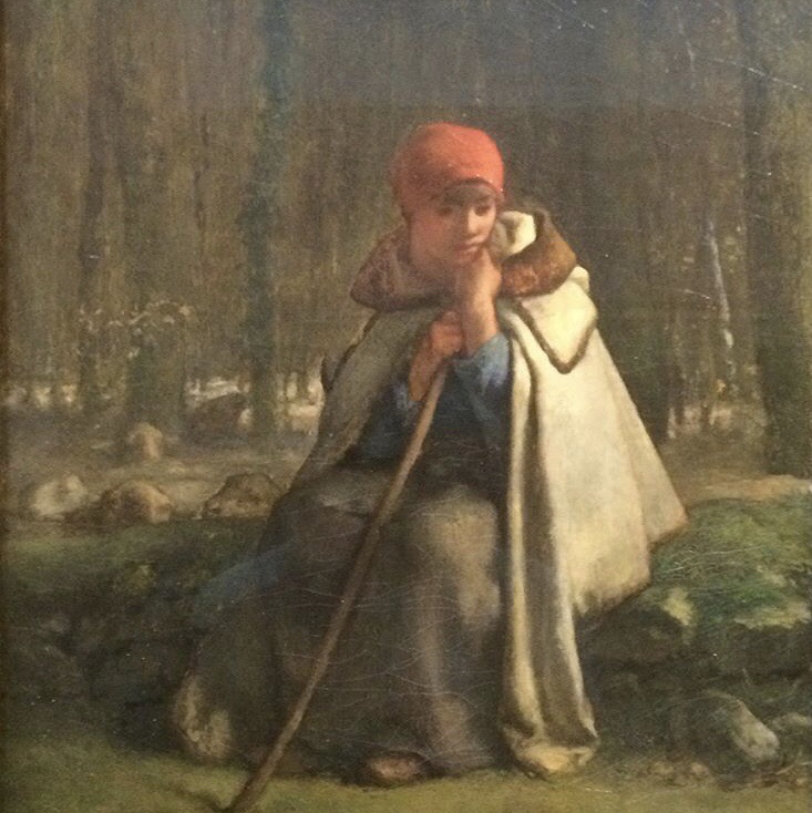 « Il chante, l’air répond, et le silence écoute »: Millet aimait se réciter ce vers du Paradis Perdu de John Milton. Quel silence se devait être que ce « silence plus silencieux que le silence même », s’étonnait-il auprès de son ami Wheelwright! c’était un silence qui convenait à sa personnalité introvertie, méditative, et qui enveloppe ses jeunes bergères, adolescentes pensives, perdues dans leurs rêveries ou sa gardeuse de dindons qui tourne délibérément le dos au monde, condition du recueillement.