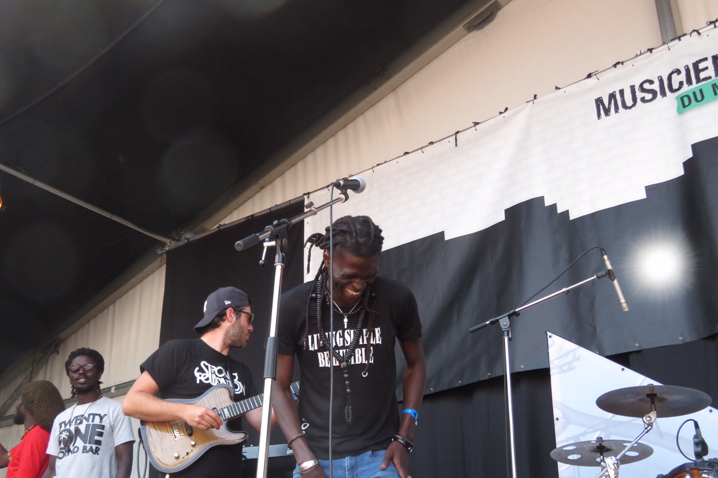 Il n’en fallait pas plus pour que les amoureux de rock punk présent devant la scène se mettent à sauter dans tous les sens certains torse nu, mais dans un esprit bon enfant comme dans de véritable concert de rock et la cerise sur la gâteau a été le saut dans le public pour les deux guitaristes du groupe réceptionnés par un public qui n’attendait que ça et qui ne voulait plus les laisser s’en aller.