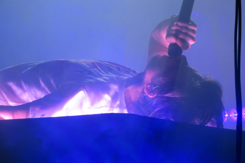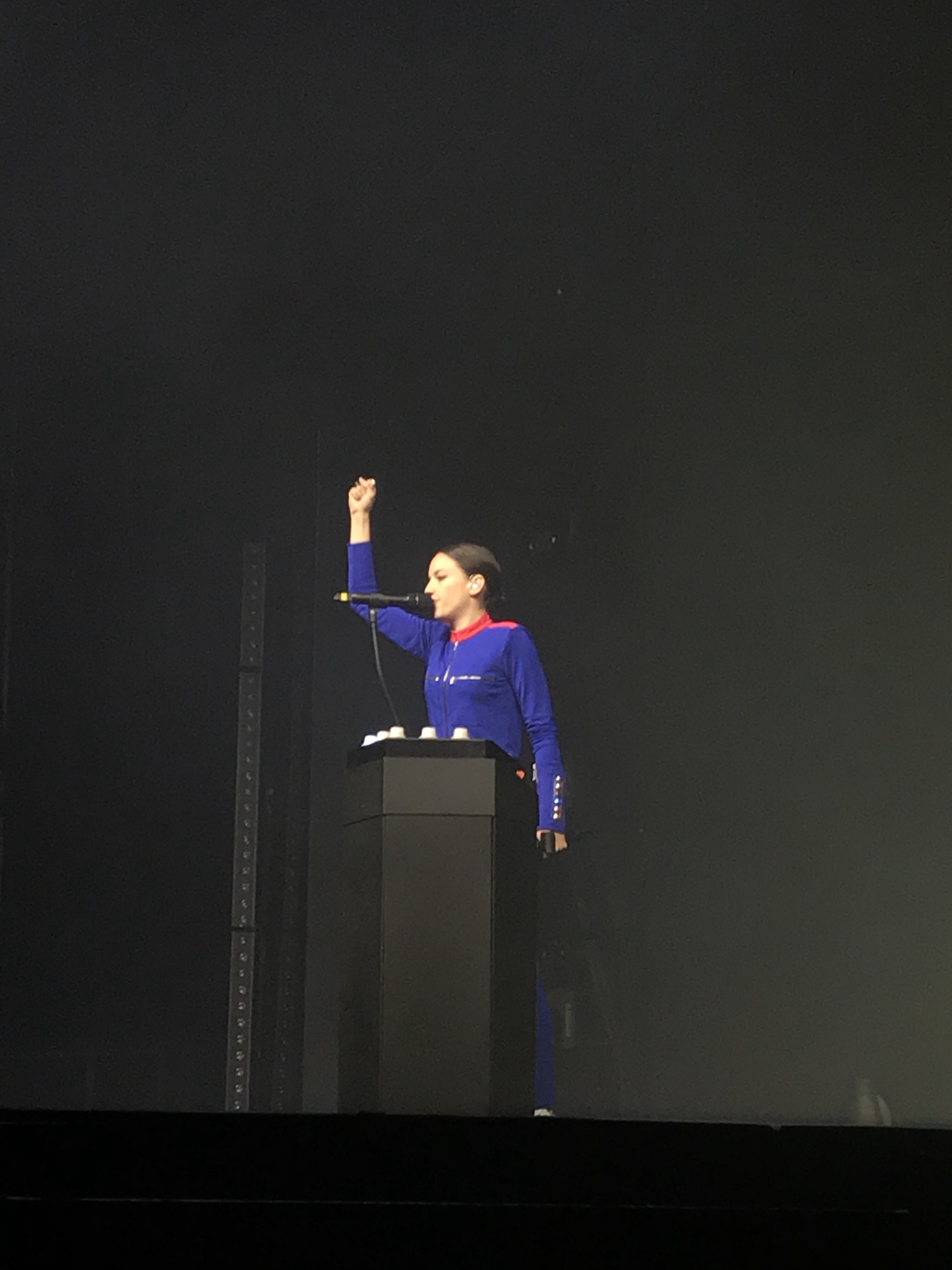 C’est la tête d’affiche de la soirée, princesse de l’afropop, Jain arrive sur scène une main sur le micro et une autre sur son set pour faire danser le public, impossible d’y résister tant elle nous entraine. Vêtue de son bleu habituel agrémenté cette fois de petites perles qui s’illuminent au niveau des manches, elle nous explique que ça lui sert à contrôler les quatre enceintes qui l’entourent pour lever toute ambiguïté chez ceux qui se demandaient si elle avait préenregistré ses morceaux.