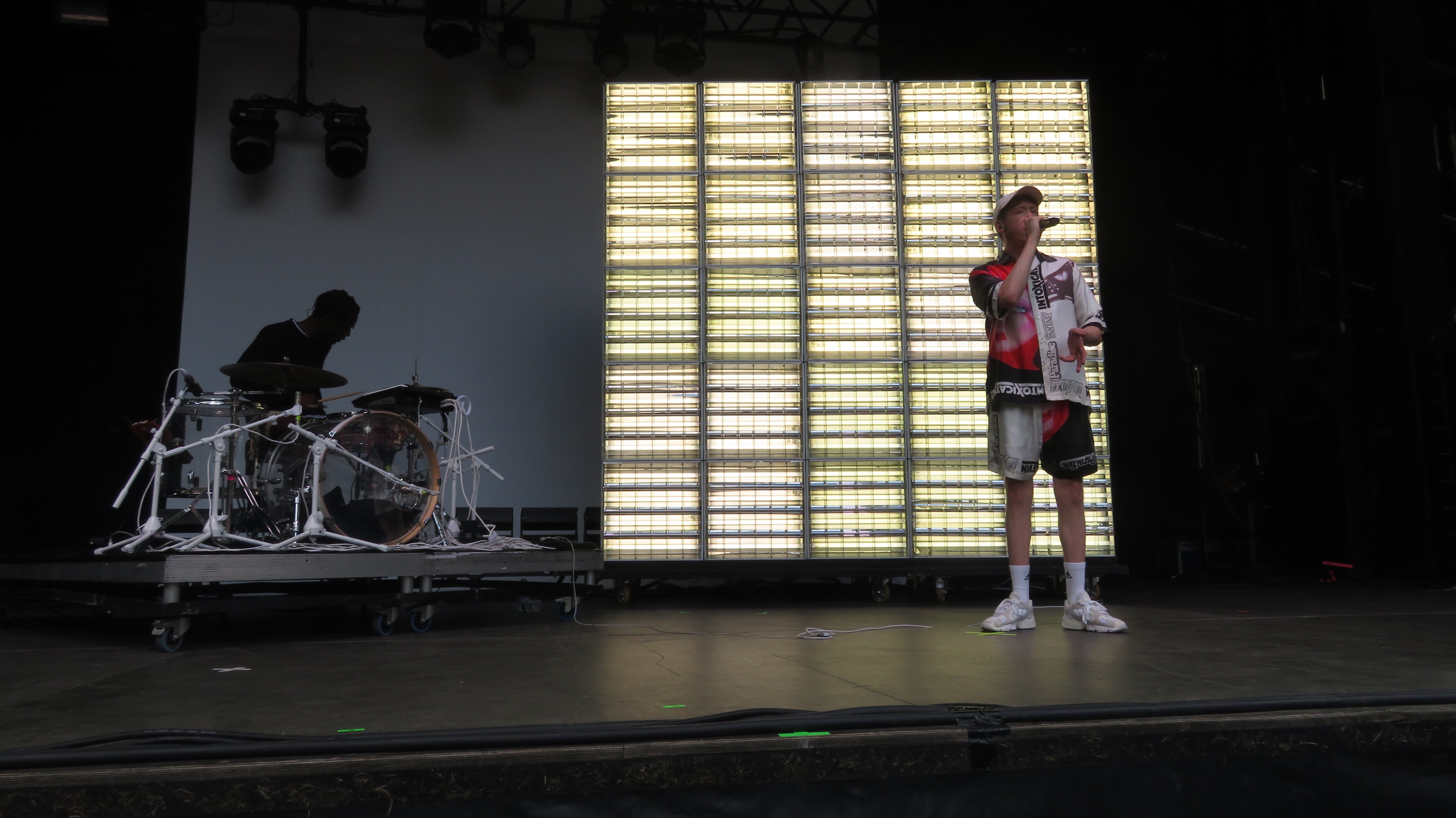Le soleil se couche lorsque nous rejoignons la scène Central parc pour le show de petit biscuit. Certes il est petit et jeune, mais il jouit déjà d’une vitrine internationale puisqu’il a participé au dernier festival Coechella aux usa. La dernière fois que nous l’avons vu sur scène c’était au festival Art Rock et nous le retrouvons ce soir avec la même énergie pour faire danser le public sur de l’électro avec son célèbre Sunset lover