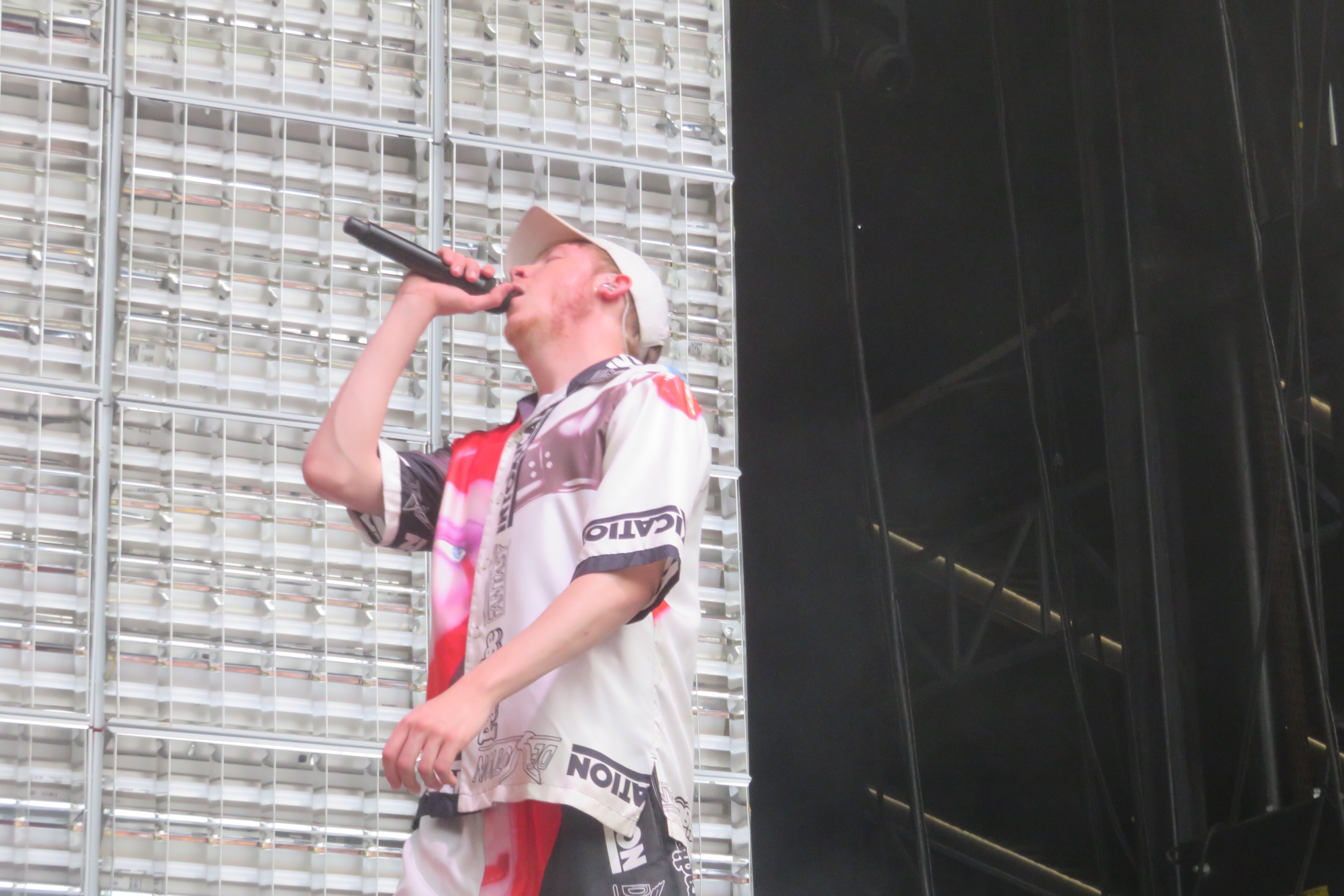 Le public a déjà pris d’assaut la fosse devant la scène Central Park quand Eddy de Pretto fait son entrée sur « intro » accompagné de son éternel smartphone qui lui sert à balancer ses sons et de son basiste.