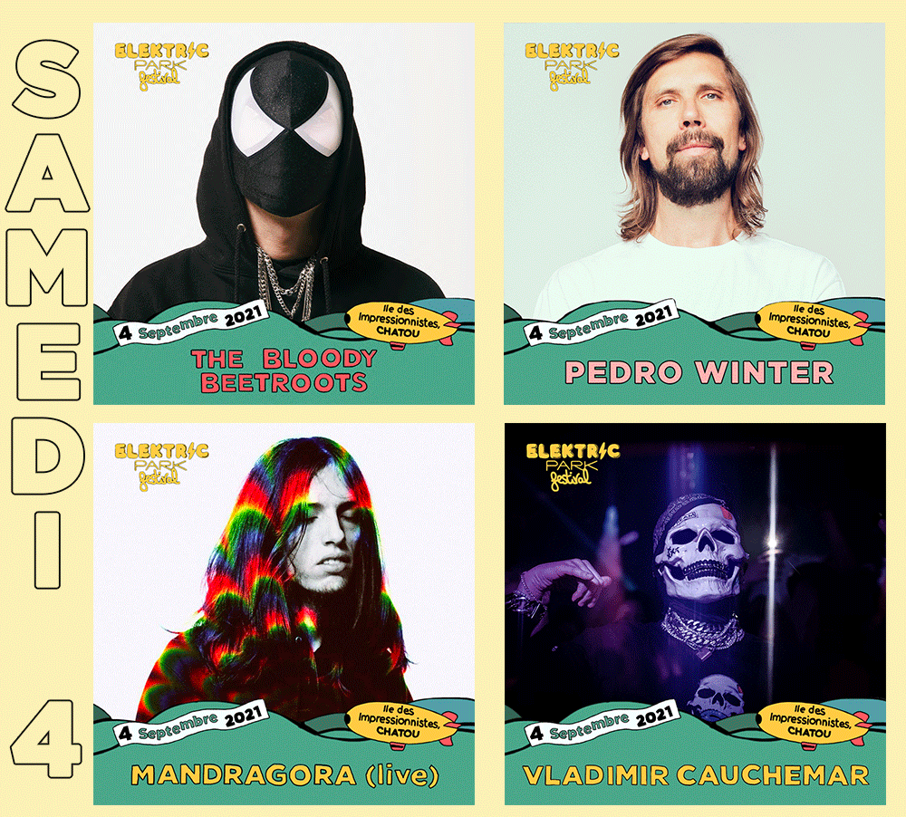 Le festival de musiques électroniques Elektric Park revient pour la première fois sur 2 jours, les Samedi 4 et dimanche 5 septembre 2021, sur l’île des Impressionnistes à Chatou (78). Une grande partie de la programmation de l’année dernière a été reporté sur l’édition 2021, les artistes ayant accepté de jouer le jeu.
