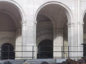 Nous étions nombreux dans la cours du cloitre de l’Abbaye. Il faisait beau sans que la température soit caniculaire. Nous admirions les arches de la galerie, et la porte de la salle capitulaire. Des oiseaux traversaient l’espace, les passereaux et colombes mélangeaient leurs chants avec le chœur. Les conditions étaient idéales pour entendre des chanteurs a capella.