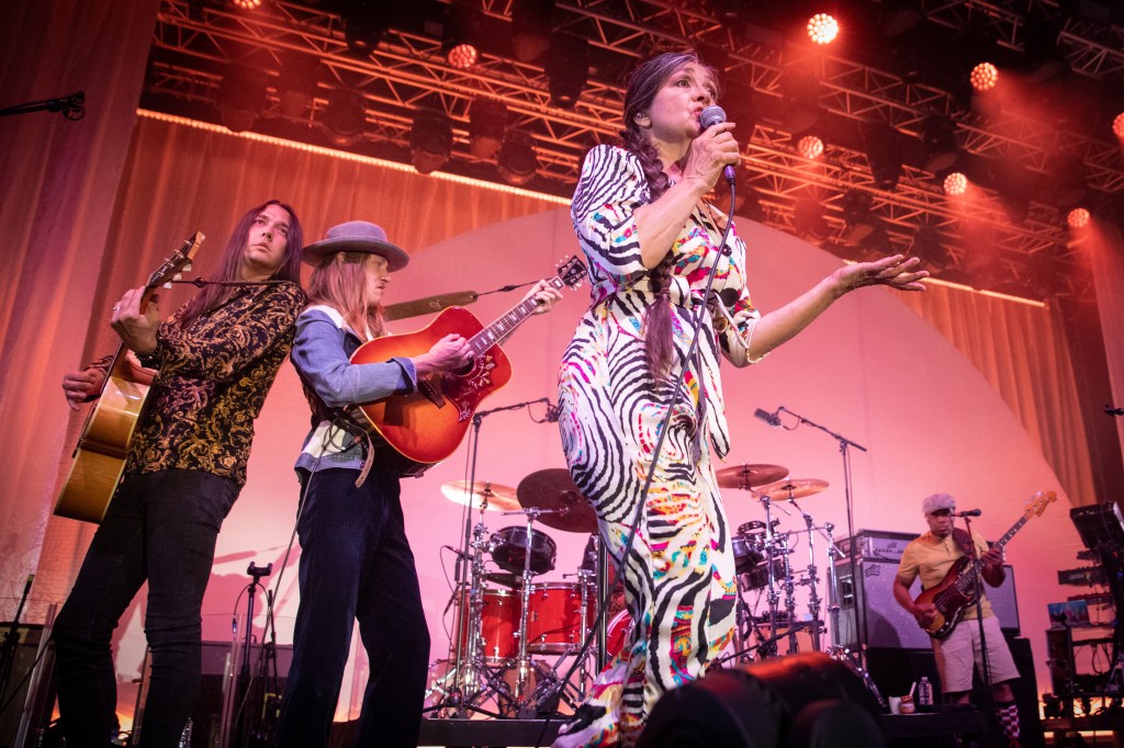 En tête d’affiche ce soir, Catherine Ringer chante une sélection de titres du duo qu’elle partageait avec son compagnon Fred Chichin, Les Rita Mitsouko. Elle annonce la couleur : elle interprètera des chansons très connues et d’autres moins, mais qui lui sont chères. Fraîchement remise du Covid – heureusement vaccinée, elle en a fait une forme bénigne – la chanteuse remonte sur scène ce soir pour la première fois après quelques dates annulées. L’énergie déployée par l’artiste ne laisse présager d’aucune fatigue résiduelle. Elle est entourée de six excellents musiciens, parmi lesquels nous reconnaissons les deux guitaristes : son fils Raoul Chichin et le charismatique Paul Pavillon qui accompagne généralement Gaëtan Roussel sur scène. Ce combo incroyable nous offre un show puissant, la mise en scène est fidèle à l’univers des Rita Mitsouko et la présence scénique de Catherine Ringer est époustouflante. Parmi les tubes interprétés ce soir, nous retiendrons particulièrement Marcia Baila, C’est comme ça, et Andy au rappel.