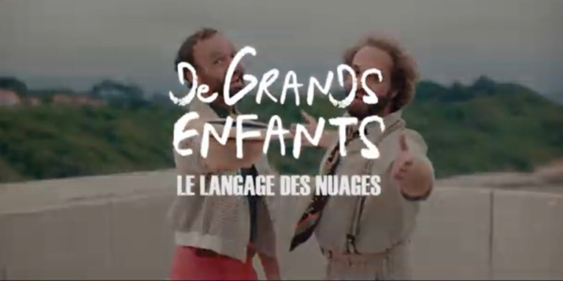Après avoir traversé la belle aventure The Artist sur France 2, le duo De Grands Enfants revient avec leur nouveau single « Le langage des nuages ». A travers ce morceau, ils mettent en avant l’innocence de façon pop où la joie se reflète dans les paroles et le clip. Ce morceau illustré par un clip réalisé par Jessy Nottola, a été tourné façon « road trip » en région parisienne, en Avignon, à Saint-Jean-de-Luz, à Capbreton, à Mérignac et en Poitou-Charente avec beaucoup de personnes, amis ou inconnus qui a permis de créer une ambiance chaleureuse à ce morceau.