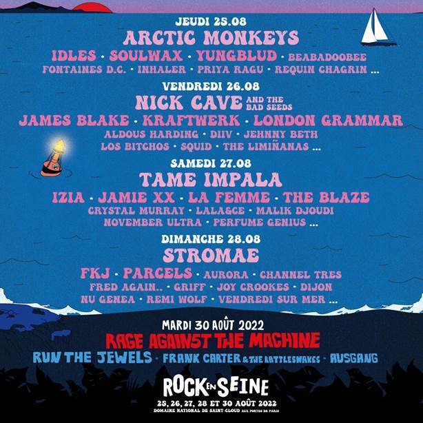 Un groupe exceptionnel pour une édition qui ne le sera pas moins : cinq jours de concerts, des têtes d’affiche prestigieuses (Arctic Monkey’s, Nick Cave, Tame Impala, Stromae, Rage Against The Machine…) et des places qui partent très vite : les forfaits 4 et 3 jours et certains forfaits 2 jours seront bientôt épuisés ! Alors ne tardez pas, rejoignez-nous pour ce qui sera le grand événement de la fin de l’été !