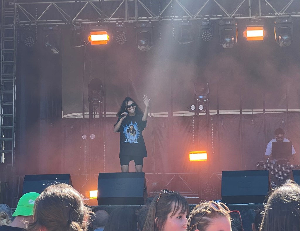 En ouverture de cette dernière journée, on retrouve la rappeuse franco-palestinienne Carmeline, lauréate du Prix Pernod Ricard Live Music 2022, qu’on avait découvert le 16 juillet dernier lors du grand concert Ricard Live Music Festival à Marseille, aux côtés des pointures du coin comme Sch, Soso Maness ou encore Kungs. Grâce à sa pêche communicative, elle arrive à tenir en haleine le public clairsemé qui commence à se former devant la scène et qui se laisse entraîner par ses compositions qui font la part belle aux sonorités orientales et à la musique urbaine. A l’image de ce groupe de grands schtroumpfs rouges qui fera le show en parallèle devant la scène comme au temps des bonnets rouges. Que ce soit en français ou en arabe, celle qui n’a pas le temps « sauf quand c’est pour la mif » ratisse large pour s’affirmer et s’imposer dans un secteur encore hermétique aux femmes. Elle sera d’ailleurs la seule voix féminine à l’affiche de cette 32e édition qui ne compte pas moins de 25 concerts, comme nous l’a fait remarquer une festivalière à la fin de sa prestation.