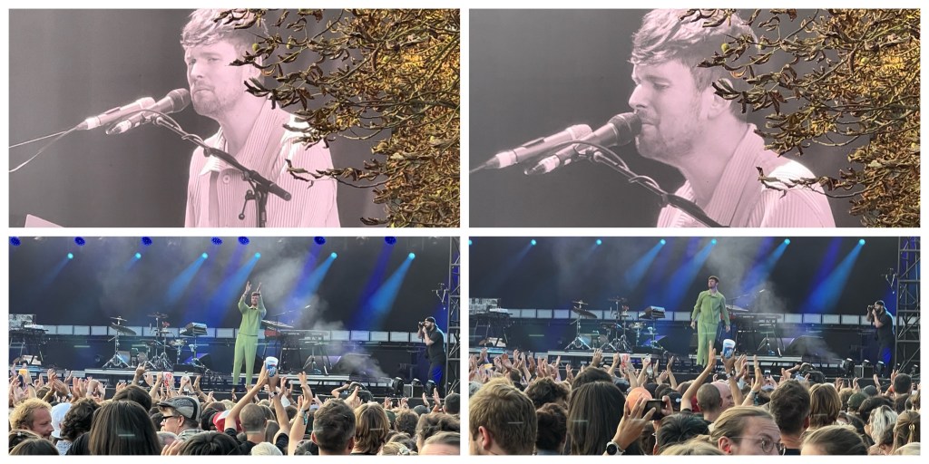 Direction la scène Cascade dès notre arrivée le vendredi en fin d’après-midi, où le britannique James Blake est déjà sur scène. On a encore en souvenir son concert aux Nuits Sonores à lyon en 2019, qui nous avait complètement transportés. La recette n’a pas changé, mais le lieu ou l’horaire s’y prête peu, une programmation beaucoup plus tard pour ce style de musique aurait été préférable. Mais on ne boude pas notre plaisir pour profiter de ce voyage en compagnie d’un artiste à la bonhomie contagieuse. « Je me sens comme au Paradis » confesse l’anglais derrière son piano avant de nous filer les frissons avec son tube « Retrograde », jusqu’au final sur une reprise du titre « Godspeed » de Frank Ocean. Du James Blake comme on aime et qui salue timidement son public dans son ensemble vert pomme, avant de disparaître en backstages.