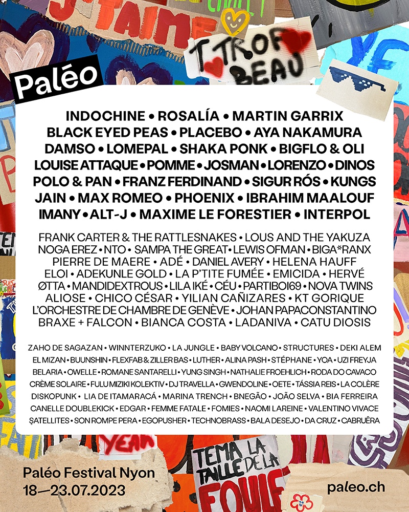 Plus de 120 artistes sont attendus pour la 46e édition du Paléo festival qui se tiendra à Nyon du 18 au 23 juillet 2023 avec comme invité d’honneur le Brésil et une pléthore de têtes d’affiches parmi lesquels Aya Nakamura, Indochine, Rosalia, Shaka Ponk ou encore Damso