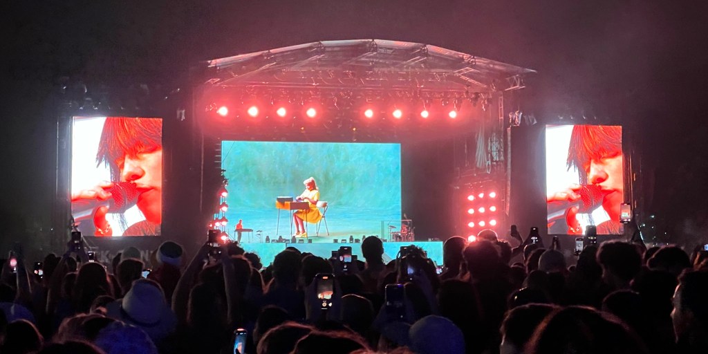 Les principaux titres de son répertoire seront mis à contribution, passant d’une ambiance à une autre. De l’electo « Therefore I am » au mélancolique « What was I made for ? », B.O du carton cinématographique de l’année Barbie, en passant par « You should see me in a crow » dont le refrain est repris en cœur et manière frontale par le public.