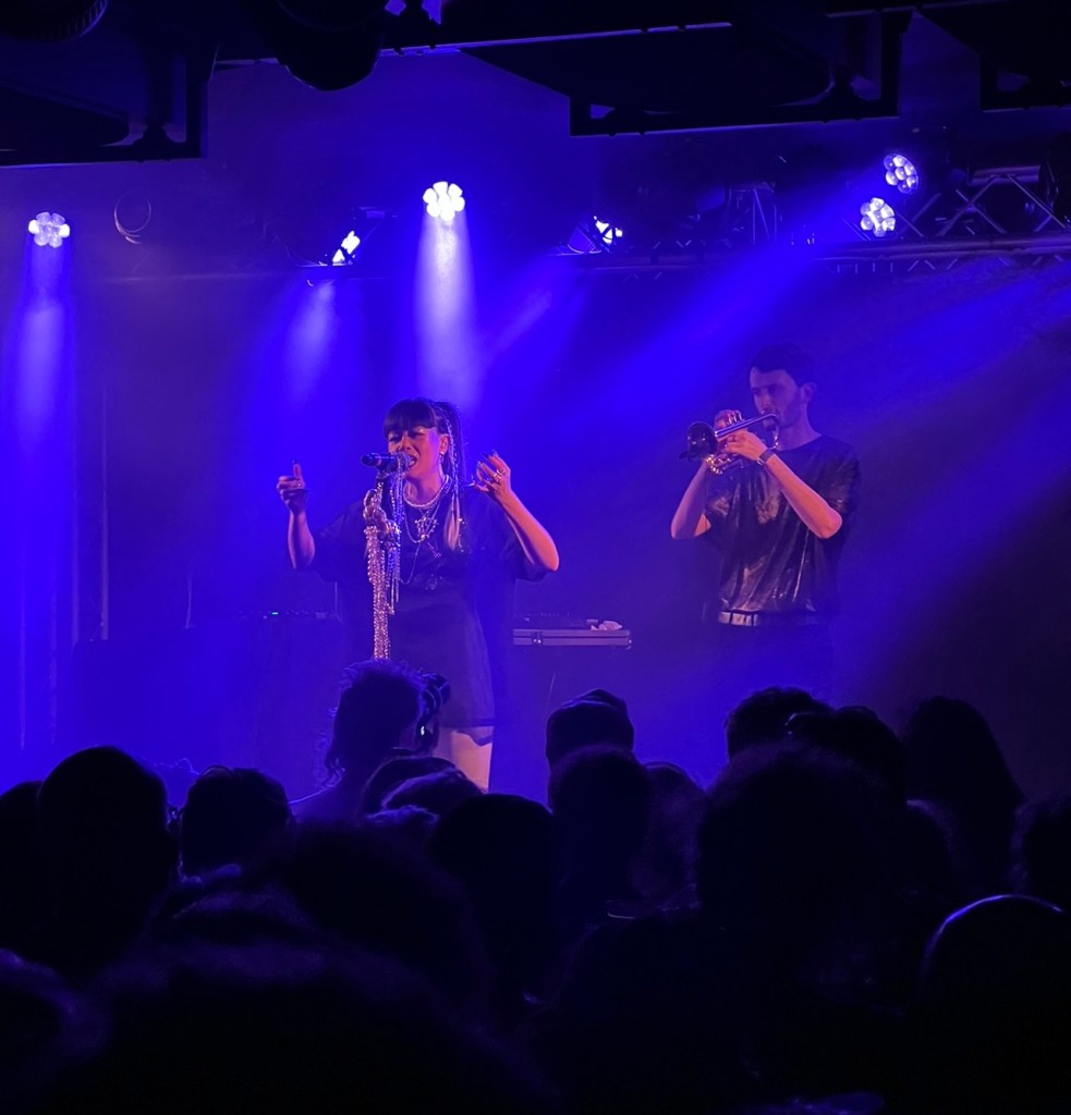 Après une entrée en mode « Sirène » derrière son micro à pied perlé de bijoux, et toujours accompagnée d’Adam Carpels, son alter ego musical, situé derrière elle, qui jonglait entre sa table de mixage et son instrument de prédilection, les premiers mots de Thérèse ont déclenché une vive émotion auprès du public présent dans la salle, au premier rang duquel on retrouvait ses parents. Un public qu’elle appelle affectueusement son « armée de l’amour », au sein duquel il n’y a aucun chef, et donc les rangs ne cessent de grossir depuis 2020. « Comment ça va La Boule Noire ? je suis hyper contente de vous voir pour de vrai qu’a travers les réseaux (…) merci d’avoir été là parce que ça été dix mois intense. Je suis contente d’avoir reçu plein d’amour venant de vous, parfois je me pose un peu de questions. Je me demande si tout cela a été fait par amour, par voyeurisme ou parce que l’algorithme d’Instagram m’a mis en avant… » a d’entrée lancée l’artiste, dans une tenue sportswear agrémentée de bijoux autour du coup qui nous a rappelés une certaine Bille Eilish lors de son concert à rock en seine cet été.