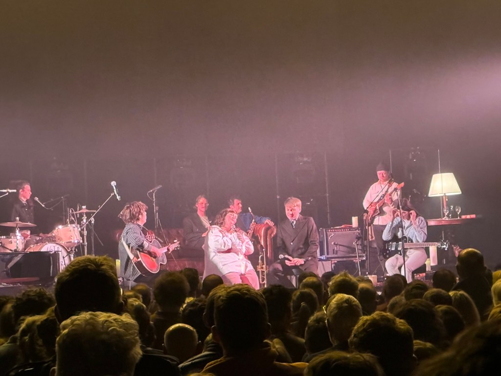 Sur scène, ils ont revisité le répertoire de la chanteuse culte qui s’étend de 1962 aux chansons beaucoup plus récentes sous la direction d’un Sage. Une approche collégiale où chaque artiste était à la fois musicien et interprète. C’est ainsi que durant une heure et demie, le public a pu tour à tour apprécier « La question », interprétée par Clara Ysé et Clara Luciani, « Mon Amie la Rose » par Clara Luciani qui donnera également la réplique à son amoureux Alex Kapranos sur « Comment te dire adieu ». Ce dernier accompagnera de son côté November Ultra pour revisiter « Le premier bonheur du jour ».