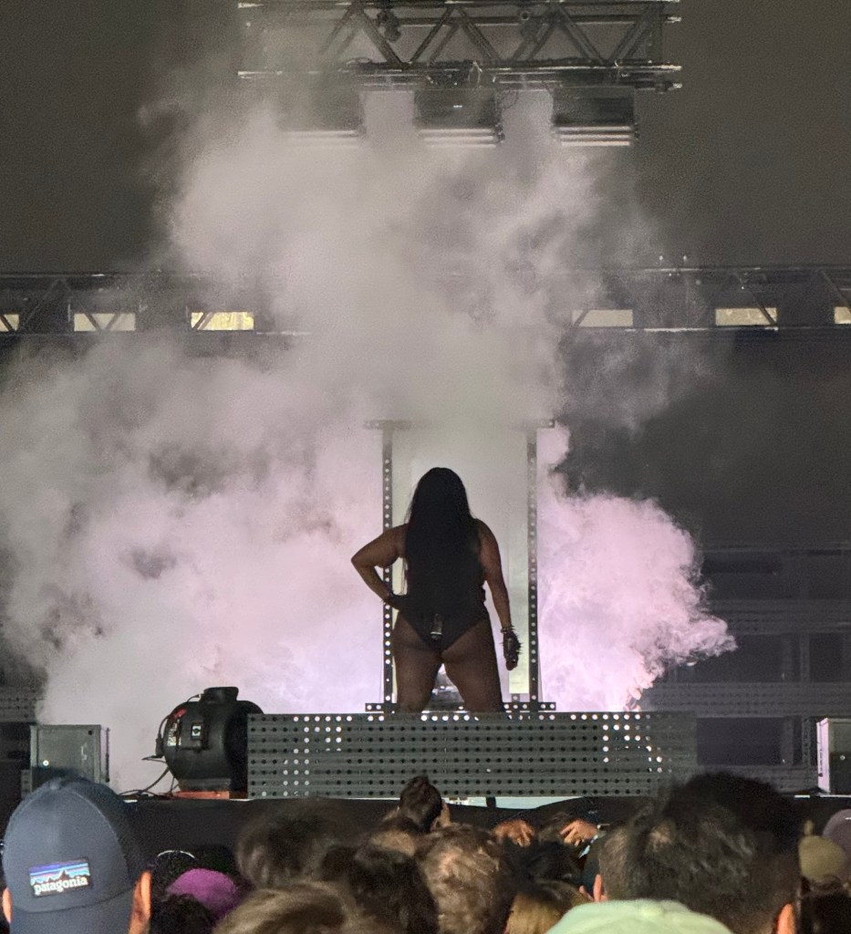 Sur « MTV », elle lève son micro comme une épée et lâche : « Ceux qui n’ont pas la ref de ce geste… étouffez-vous. » Un rire fuse dans la fosse, mêlé à un frisson collectif. Elle enchaîne sur « Problématique », sans pause, sans filtre.