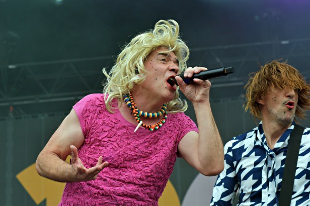 La journée du dimanche a été l’occasion pour les festivaliers les plus aguerris de faire un tour sur le parcours d’accrobranche ou de faire un karaoké endiablé sur la scène 7. C’était aussi la dernière chance pour le public de boire un verre en flânant à la friperie, visiter les stands des associations ou de faire un jeu en bois entre amis sur le Bastion de la reine. Après quelques averses qui n’ont pas entaché le moral des festivaliers, les concerts ont débuté avec le groupe Almost Monday qui a fait sensation à la Green Room grâce à son énergie et ses titres rock. Ce sont ensuite les très attendus Marcel et son Orchestre qui se sont emparés de la Main Stage et qui y ont délivré un show tout en couleurs et en paroles humoristiques sous couvert de déguisements carnavalesques. Le groupe a largement conquis un public venu en masse et les fans n’ont pas hésité à donner de leur personne en faisant des slams ou en glissant dans la boue, un véritable moment marquant du festival.