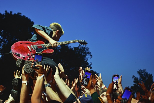 Samedi 5, les festivaliers sont venus en nombre puisque le site affichait complet avec plus de 40 000 billets vendus. A la base de cet engouement, une programmation plus pop avec notamment la venue de la chanteuse américaine Gracie Abrams pour son seul festival en France. Côté pop américaine toujours, le jeune chanteur originaire de Chicago David Kushner a fait reprendre son tube iconique Daylight au public de la Main Stage et Alessi Rose et sa pop assumée a proposé un show haut en couleurs et qui a ravi ses fans et conquit les néophytes. C’est le groupe The Backseat Lovers qui a ouvert la Main Stage et a largement contribué à créer l’ambiance pour le reste de la journée grâce à ses morceaux entraînants. Entre les concerts, les festivaliers pouvaient notamment aller se faire maquiller ou tatouer dans le fond du square, visiter les cabanes sur les remparts ou encore manger un morceau, se placer au fond du square et profiter de l’ambiance.