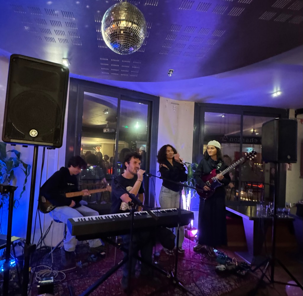 Quand est venu son tour, Anton a pris place au piano, entouré de Bernass (désolé pour l’orthographe) à la basse et Nina à la guitare. Le voyage a commencé par « Musique et sexe », son tout premier single sorti en 2023, avant de basculer dans la mélancolie de « Tracé nos vies ». Ce morceau, qui ouvrait déjà l’EP, a résonné comme une confession brute, la douleur d’une rupture, l’avenir rêvé qui s’effondre.