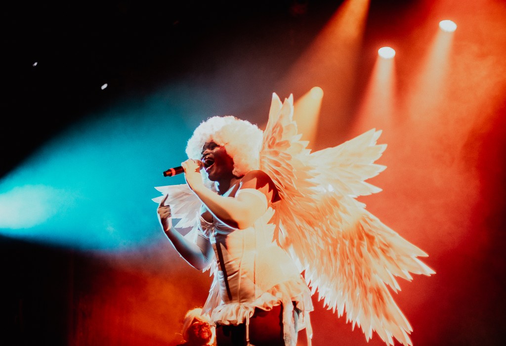 Des ailes d’ange, une afro aux mèches blanches, un corset glamour : Pierre et la Rose attire le regard avant même de prononcer une note. Mais dès que sa voix grave s’élève, c’est le cœur qu’iel capte.