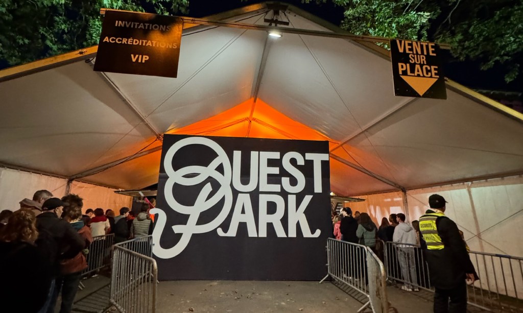 Il fait un froid de canard ce premier soir de festival quand nous arrivons au Fort. Peut-être notre côté parisien, mais ici, les gens semblent peu couverts, sûrement habitués. On souffle dans nos mains, en se disant que le week-end va être long, mais beau. C’est la première fois qu’on couvre le festival Ouest Park, et le lieu est impressionnant : quatre scènes, quatre univers. Le grand chapiteau pour les têtes d’affiche, la scène du Fort (elle aussi sous une toile), le Tetris, véritable salle de spectacle, et le CEM, repaire des artistes locaux. Tout est à portée de pas, et déjà, le site grouille de monde.
