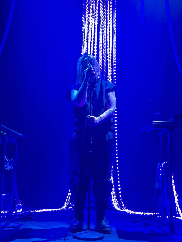 On savoure les désormais anciens titres parmi lesquels Trust qui vient embrasser Arrival (Remix), l’hymne Gone, le glaçant Never Right et In My Veins qui sonne actuellement comme un premier pas vers la transition d’identité. Les sublimes lumières magnifient les show en passant du rouge au bleu, du vert au rose mêlé de blanc, elles transpercent les ténèbres de nos âmes. Les sommets d’émotions de cette soirée portent selon nous le nom de The One plus calme mais teintée d’une sourde colère, Ain’t No Woman qui résonne en nous en déstructurant les codes de la féminité et se continue à la perfection d’Unbroken pour ne jamais rester à terre. Le final Who I Used To Be/My Poison nous assomme si bien que nous devons nous accorder quelques minutes pour laisser s’estomper les tourbillons dans la tête avant de trouver la force de quitter la salle.
