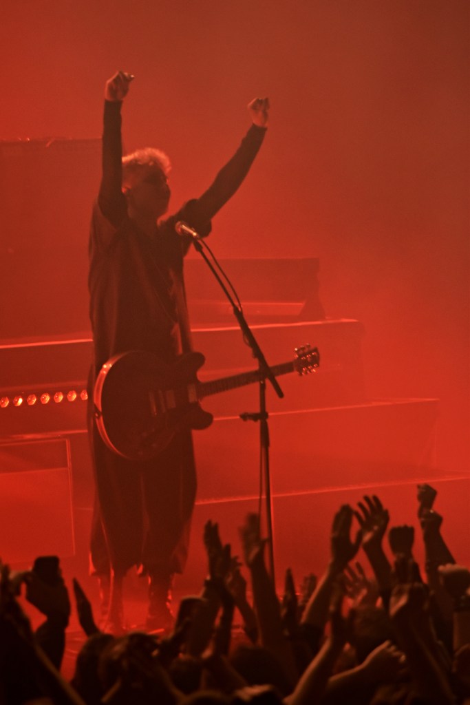 Après une première partie assurée par SONS, Last Train entre en scène sous les acclamations d’une salle comble. Dès les premières notes, l’Aéronef explose ! Le rock, à pleine puissance, prend sa place sans demander de permission : une première claque est assénée et on en redemande. Le groupe enchaîne les titres avec une présence scénique remarquable. Le public hurle en chœur, les bras se lèvent, la foule se resserre pour être encore plus près. Par moments, l’ambiance incandescente se calme pour accompagner les titres plus doux. Quand le piano retentit, la salle retient son souffle. Les murmures créent une brise légère qui accompagne Jean-Noël Scherrer en piano-voix. Une mélodie déchirante, belle et torturée qui résonne dans un silence parfait. Quelque chose de magique se profile : la berceuse soigne les cœurs des rockeurs. La tendresse éclate sur scène et dans la salle. On se prend dans les bras, larmes aux yeux, et on savoure un moment hors du temps, surréel, intemporel.