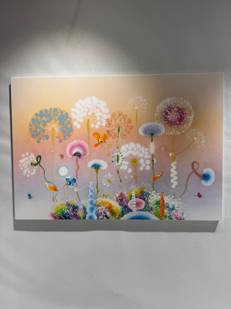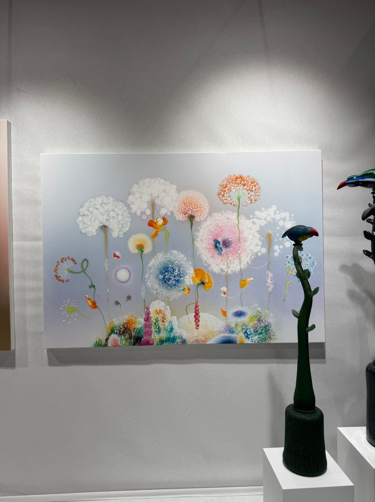 Les tableaux proposés ici sont plein de délicatesse : les couleurs pastels et les motifs floraux semblent exploser dans un nuage printanier. On se croirait en plein bouquet ou perdu dans une course entre les champs fleuris. Les tableaux sont aussi particulièrement réfléchis : chaque fleur a sa place et apporte sa propre couleur et dimension à l’oeuvre. Une certaine naïveté se fait ressentir dans les tableaux les plus épurés notamment : la fleur est placée au centre de l’oeuvre, simplement assortie d’un arrière plan très flou qui se fait oublier.